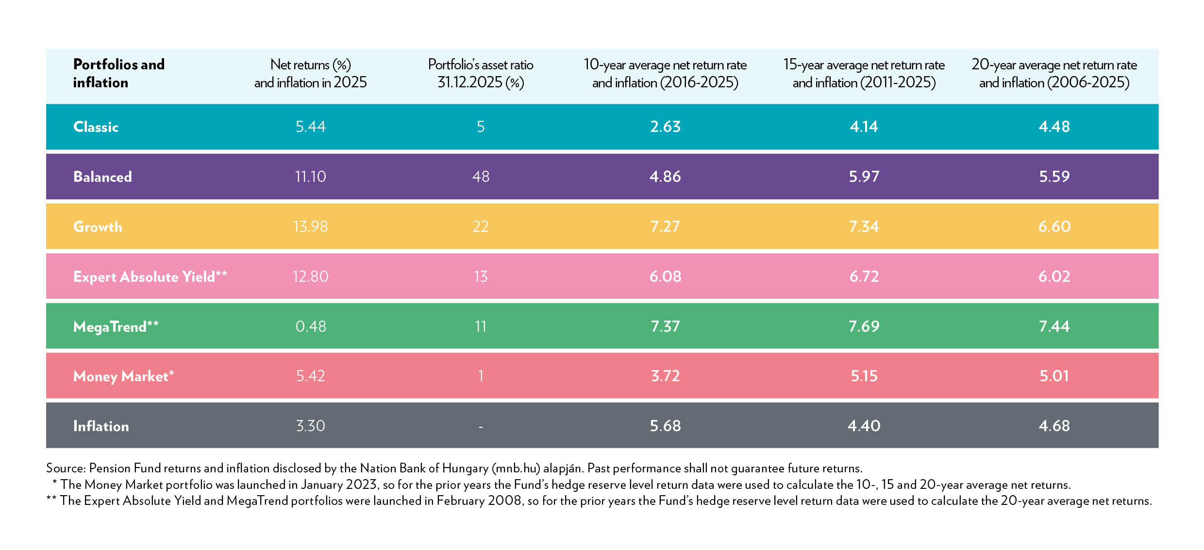 - if no contributions arrive to the account your money is still invested, i.e. it can generate yields and our pension fund is entitled to deduct maximum HUF 4,000 per annum from the positive yields generated.